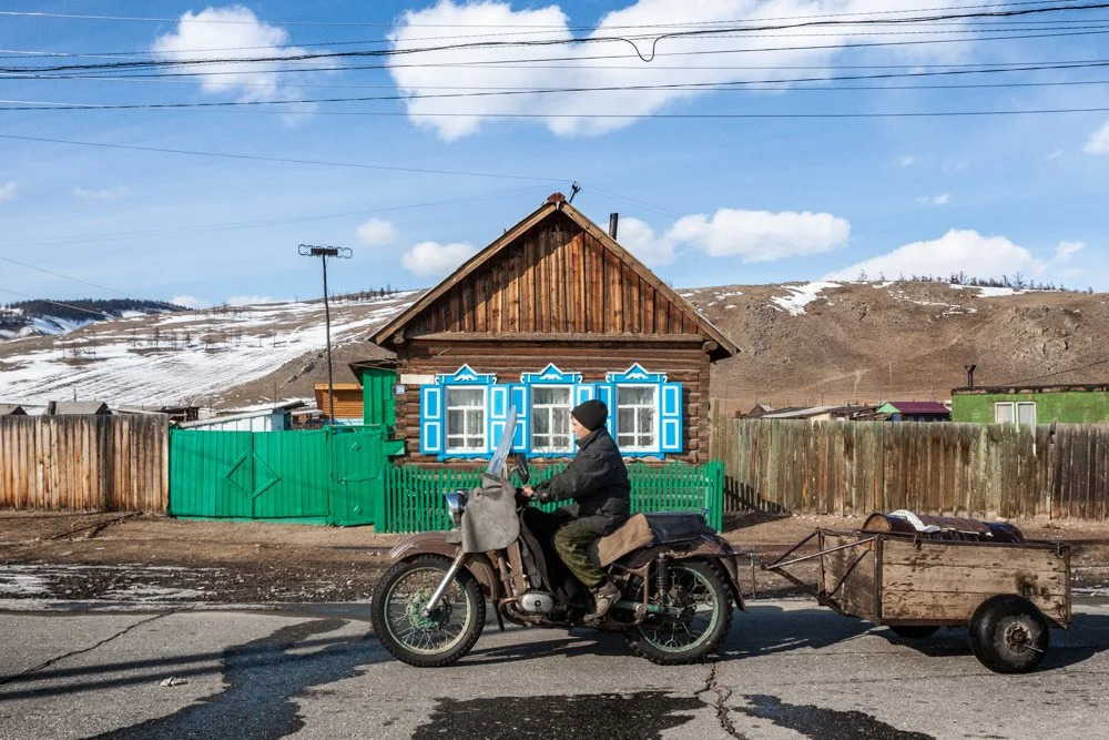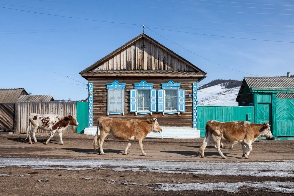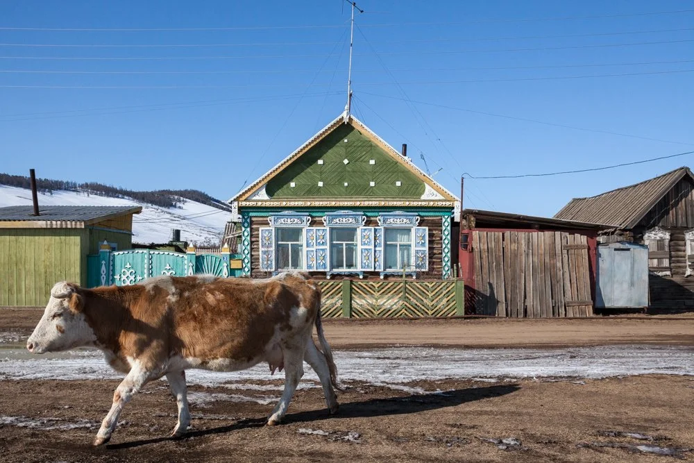 Baikalskaya est un hameau isolé de 300 habitants au nord du lac Baikal. Ici, les vaches, la pêche, l’école et le ravitaillement en eau rythment la vie du village. Le mode de prise de vue est aussi répétitif et cyclique que ne l’est le va-et-vient des habitants. Il met en évidence leurs similitudes. Chaque famille possède une maison traditionnelle en bois aux volets colorées, une Lada couleur pastel et un side-car défraichit.